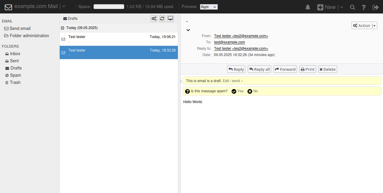 b1gMail bietet ein modernes und schnelles Benutzer-Interface. HTML-5-Funktionen wie Drag&Drop von E-Mails, Anhängen und Dateien erleichtern Ihre tägliche Arbeit.